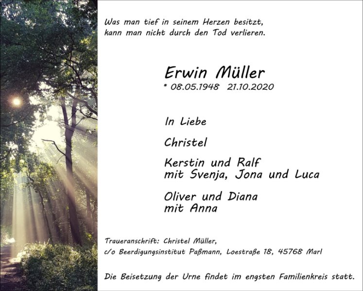 gestorben am 21. Oktober 2020 in Marl