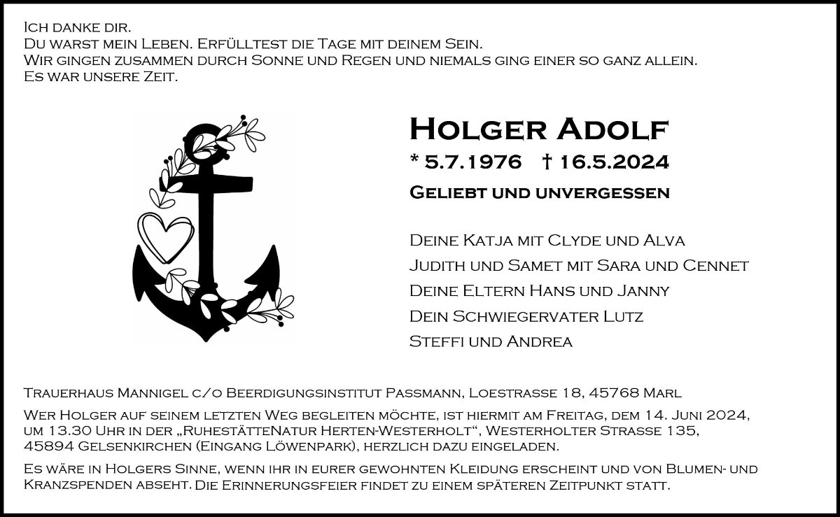 wir wünschen dir und deinen Kindern ganz viel Kraft und Zuversicht für die kommende Zeit. Wir werden Holger in guter Erinnerung behalten und denken an euch.